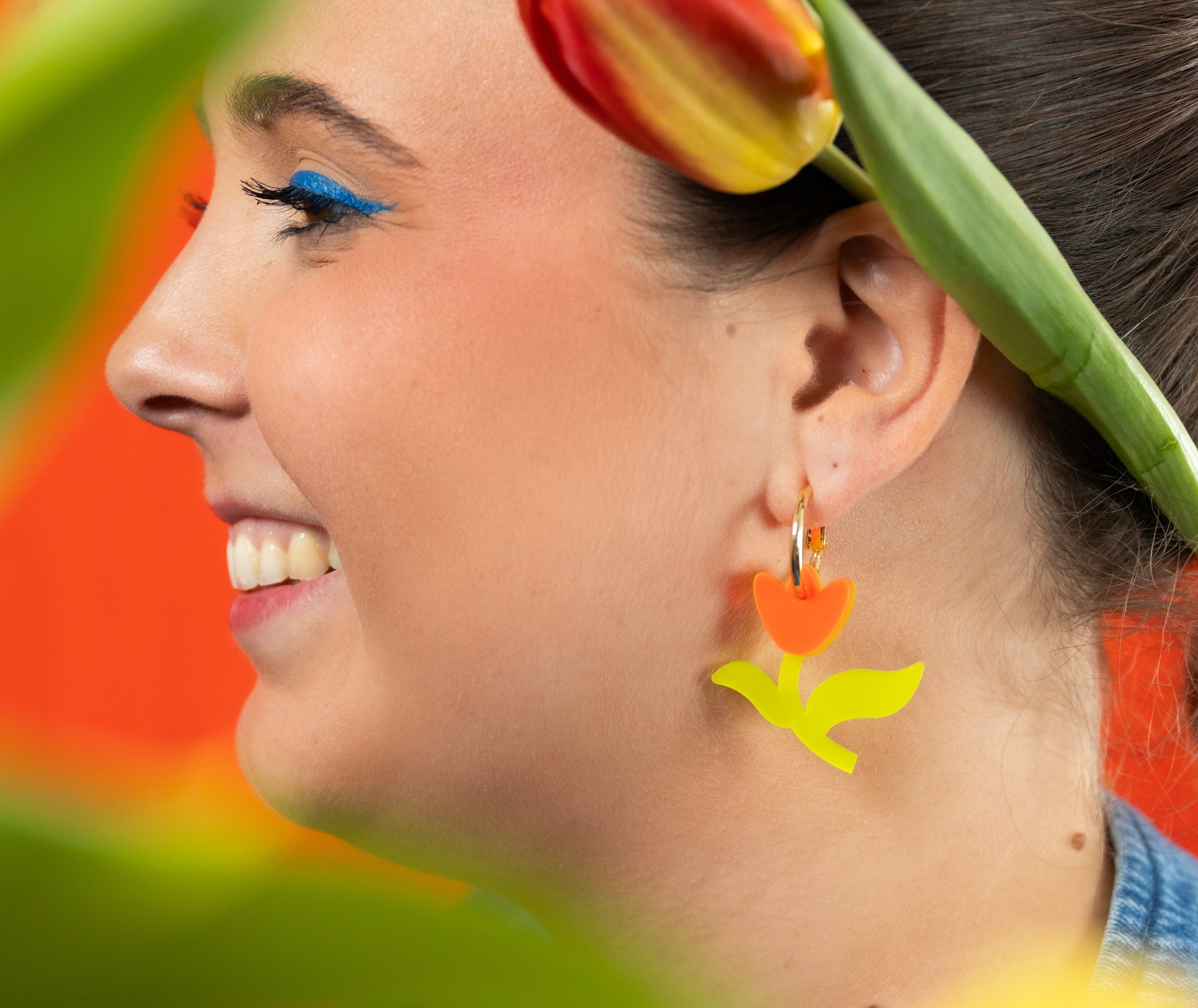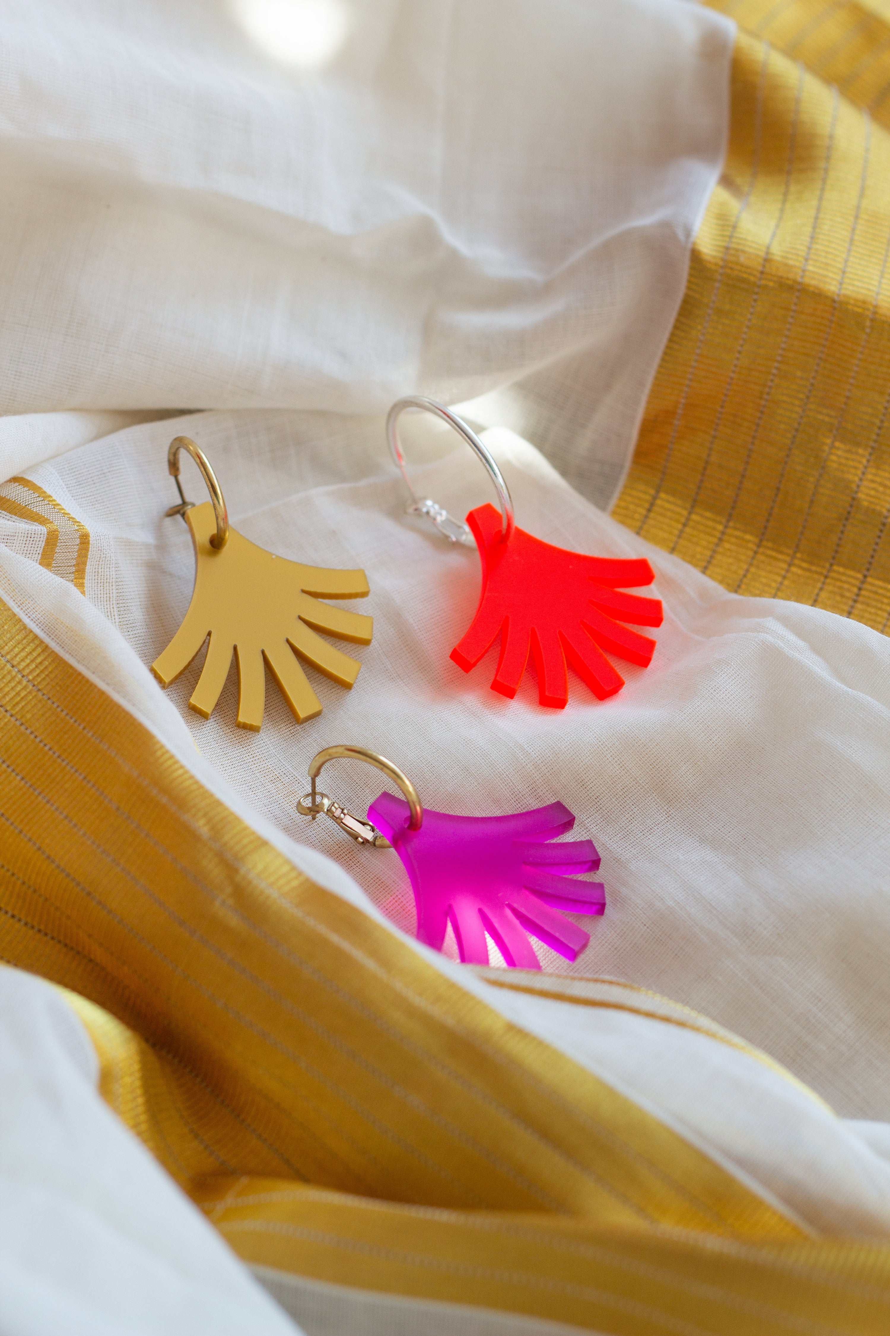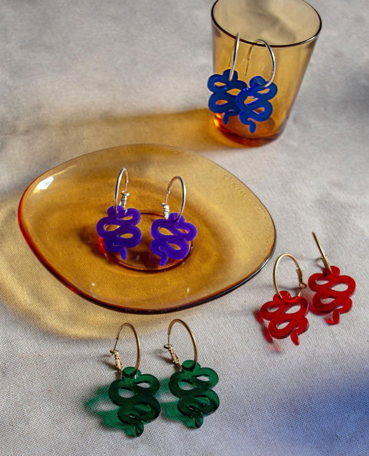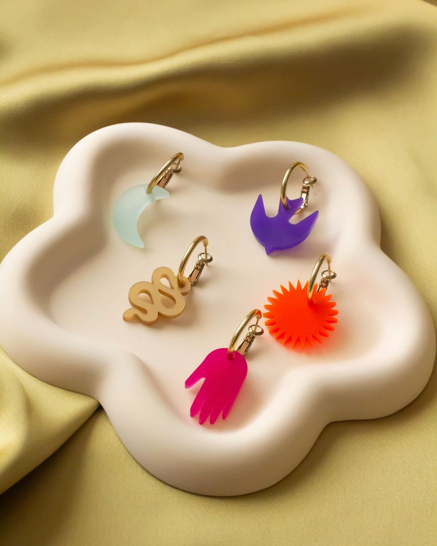 Aretes hipoalergénicos de latón lacado o con baño de plata (a elegir al hacer el pedido).